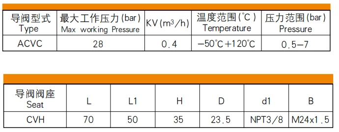 – The Pilots ACVC working by a range of pressure regulation of 0.5 Bars to 7 Bars.