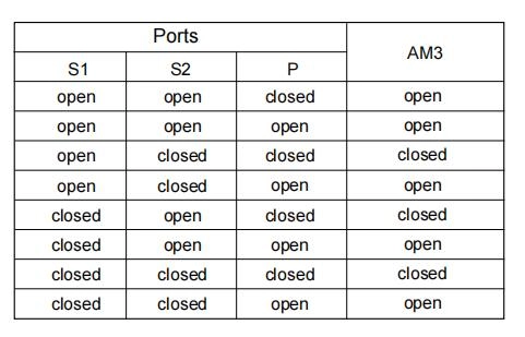 relation between the pilot valves in ports S1, S2 and P is shown in the table.